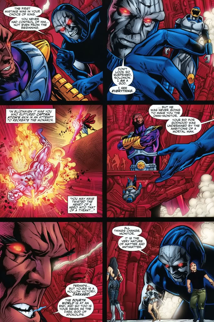 Sirspidey 3 y 5 mo 7 d... Captain atom lands an overhand left and yells at darkseid. This is a solid start for the challenger.. New 52 darkseid ( i've probably exaggerated his new 52 size, but who cares ), faces off against a more classic looking dc captain atom and powergirl, who are probably a bit steamed at the lord of apokalips interrupting their day off.