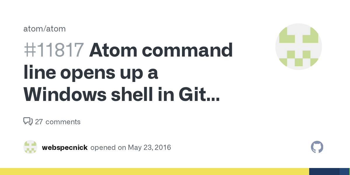 29.04.2017 · open atom in git bash (windows 10) if you are wondering how to install git bash in windows, you can learn that from jason taylor's course on udemy, command line essentials:. Instead it opens up a type of shell and expects input. It's happening on multiple windows 10 machines around the o. I am getting stuck 3rd step, i cant open atom editor on windows git bash using atom. For now, i'll jump right into how i spent much of my time figuring out why i cannot open atom in the command line.. 23.05.2016 · description the atom command line no longer opens files in the editor in windows 10.